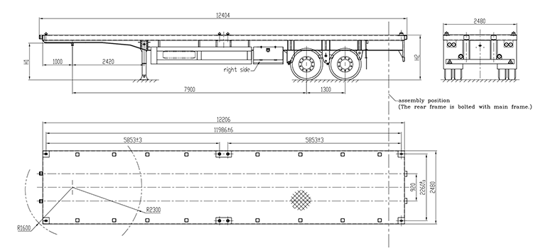 Drawing For CIMC 40 Ton 40Ft 2 Axle Flatbed Trailer