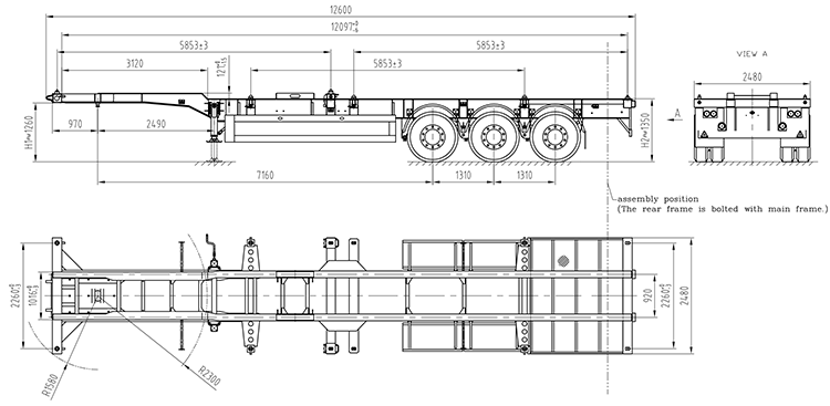 Drawing For CIMC 40Ft Tri-Axle Gooseneck Skeletal Semi-Trailer