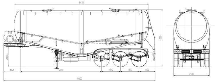 Drawing For CIMC 54 Ton 45 cbm Cement Tanker Trailer With Front Axle Lifting
